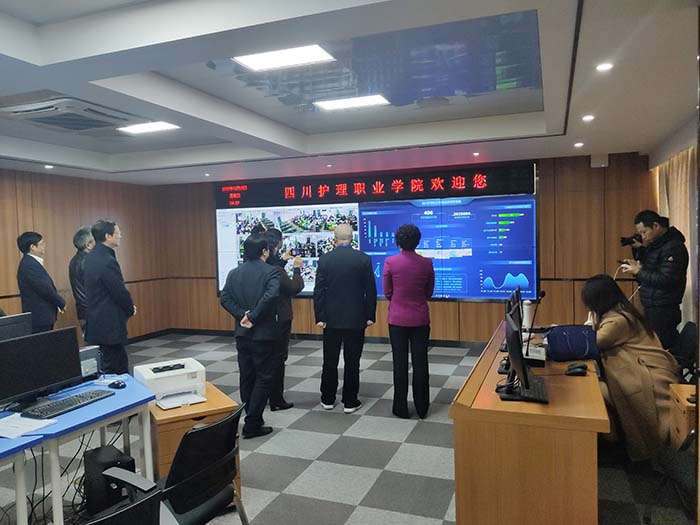 2019年12月5日上午,四川護理學(xué)院張院長(cháng)陪同省評估小組專(zhuān)家參觀(guān)我司承建的智慧教室及智慧實(shí)驗室平臺項目。
